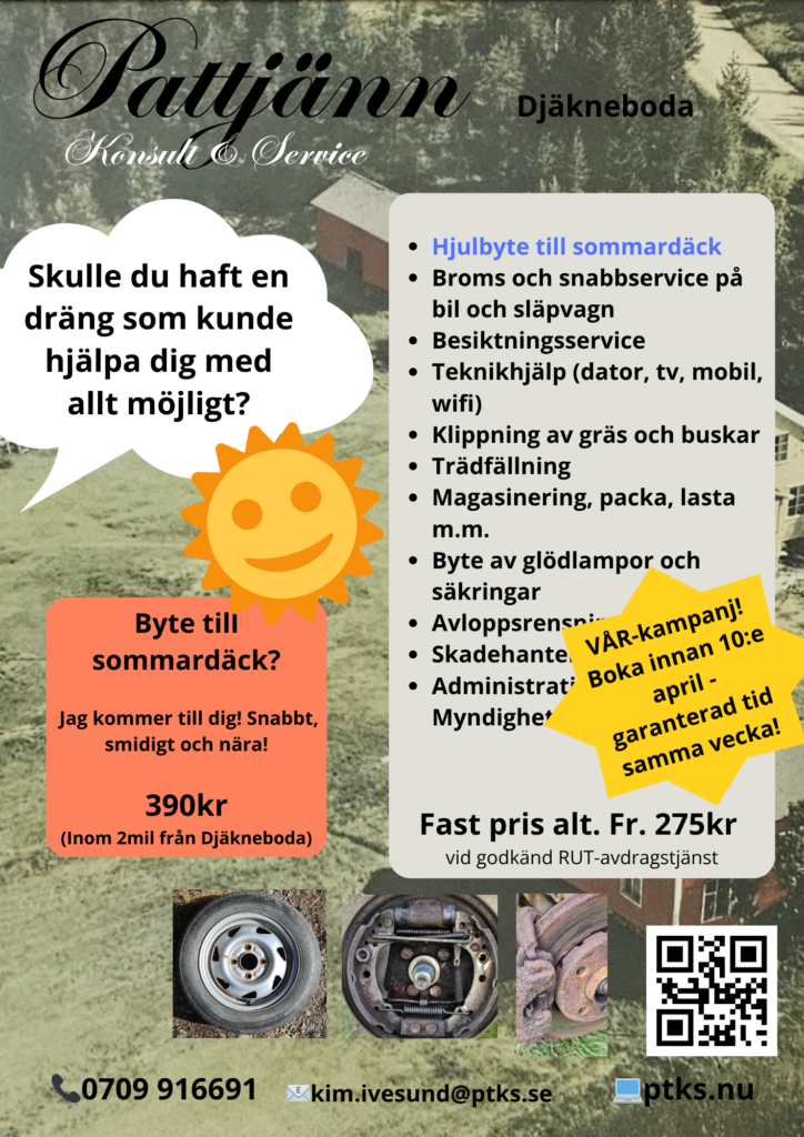Jag heter Kim Ivesund, en ”dräng” från Pattjänn, Djäkneboda. Det är min hemort och utgångspunkten för arbetet. Jag vill göra Din vardag enklare med pålitliga tjänster utifrån Dina önskemål.